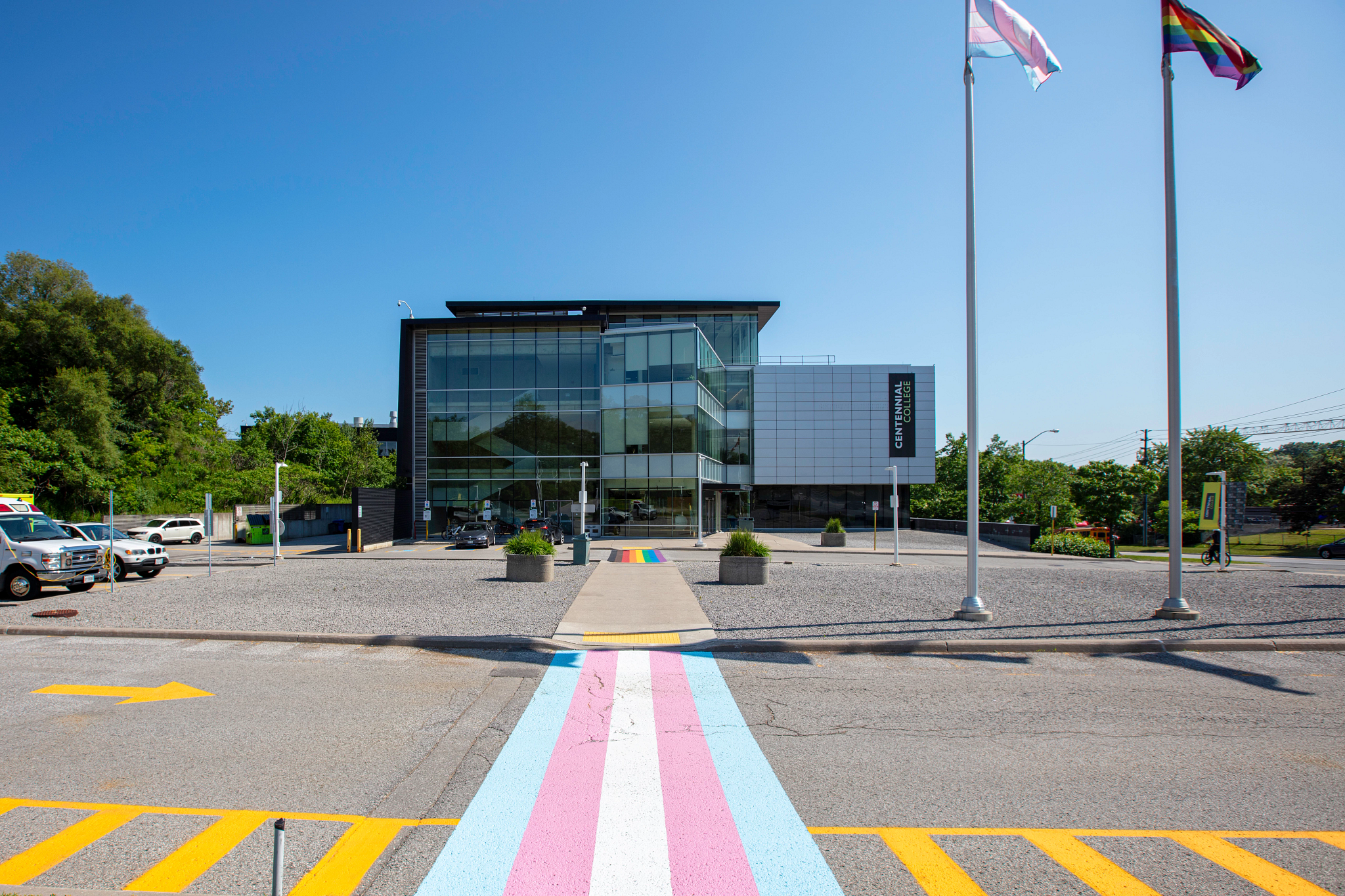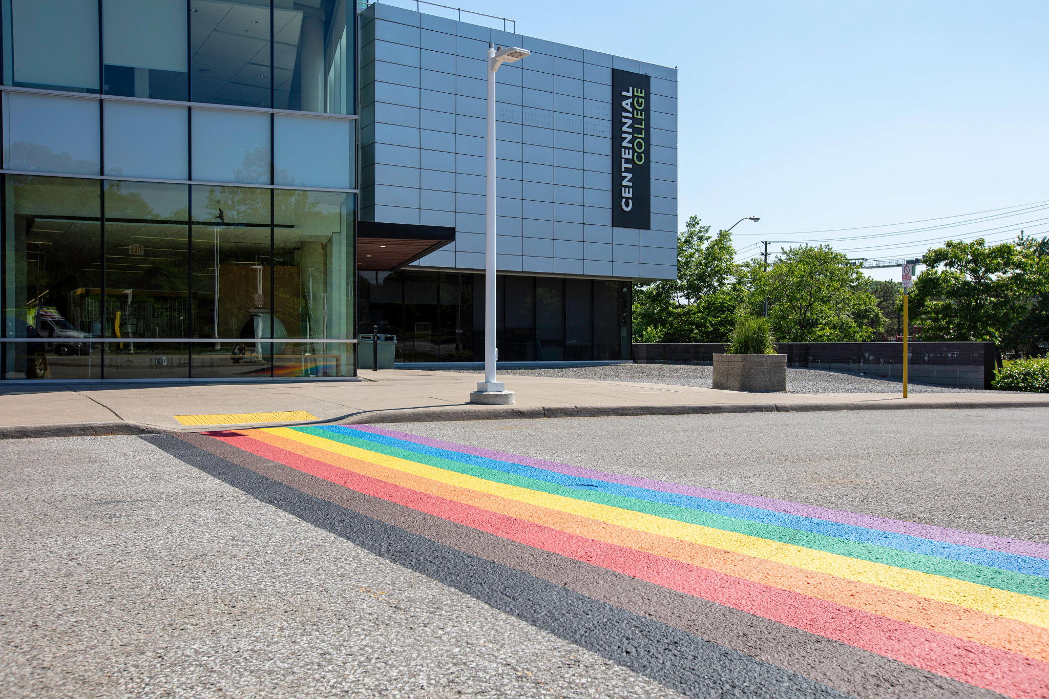 Centennial College, known for its progressive values and unwavering commitment to inclusivity, is excited to announce that effective June 2024, for the first time all of our main campuses will feature Pride and Trans crosswalks. This initiative comes at a crucial time, as it signifies the college's strong support for the 2SLGBTQQIA+ community, especially in the face of ongoing challenges both locally and globally.